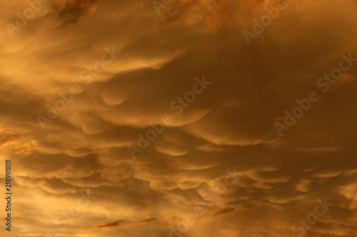 Naklejka premium Mammatus. Nuages au créuscule après un orage d'été. Clouds at dusk after a summer storm.