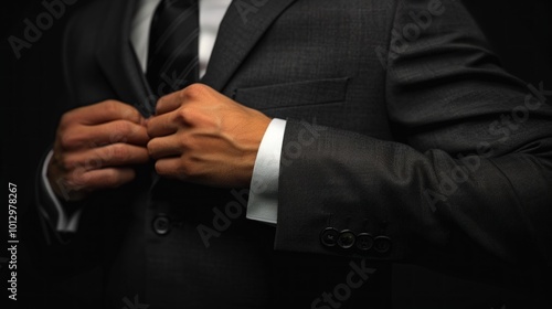 Obraz premium Man Adjusting Suit Jacket, Close-up