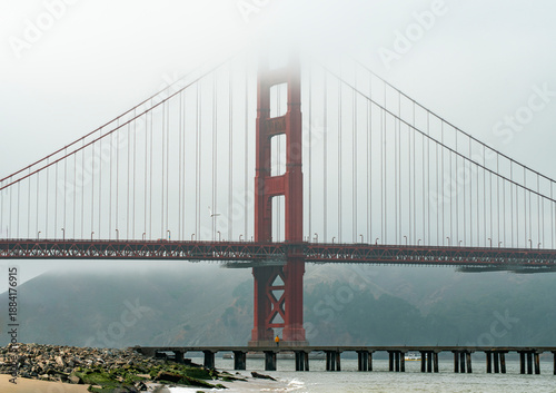 © marina, Obraz premium Man admiring the Golden Gate Bridge from a viewpoint in San Francisco