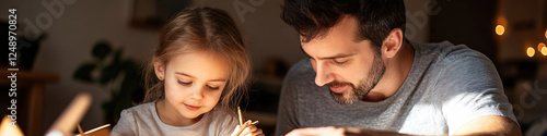 © Lila Patel, Obraz premium Man and Child Engaging in Craft Activity