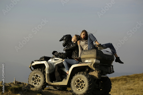 © Volodymyr, Fototapeta premium Man and girls ride quad