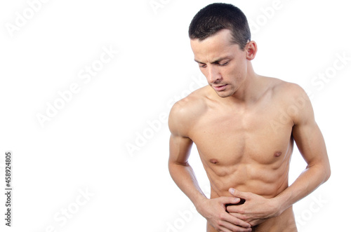 Fototapeta premium Man and health problems. Sick belly.