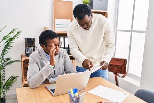 Fototapeta premium Man and woman business workers using laptop working at office