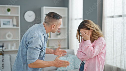 Obraz premium Man and woman couple arguing at home