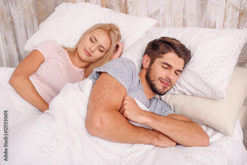 © Yakobchuk Olena, Fototapeta premium Man and woman napping in bedroom