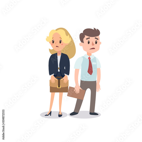 © Bonnie Cocos, Obraz premium Man and woman present a project. Vector illustration with cartoon characters. Team building. Leadership. Management. Successful team.