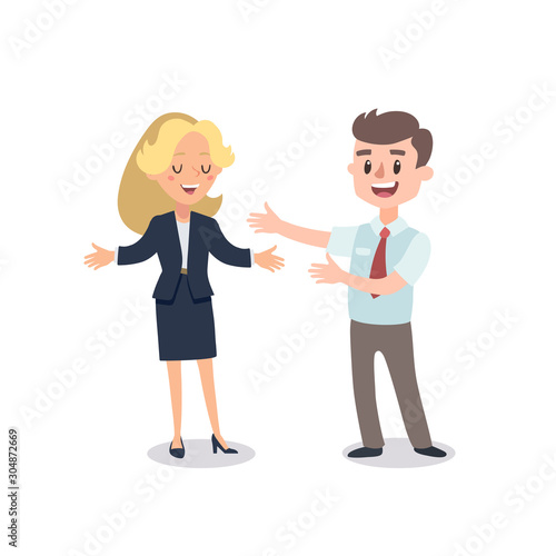 © Bonnie Cocos, Fototapeta premium Man and woman present a project. Vector illustration with cartoon characters. Team building. Leadership. Management. Successful team.