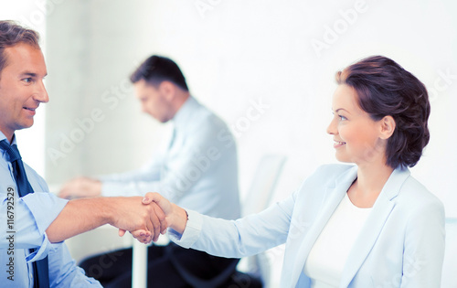 Obraz premium man and woman shaking hands in office