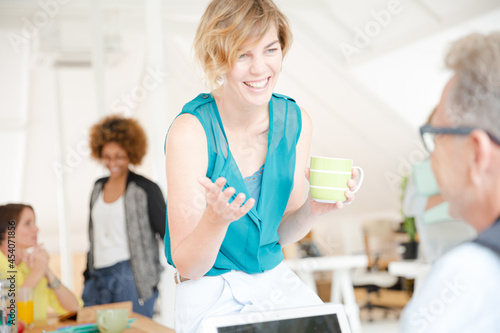 © KOTO, Obraz premium Man and woman sitting in office,smiling and talking