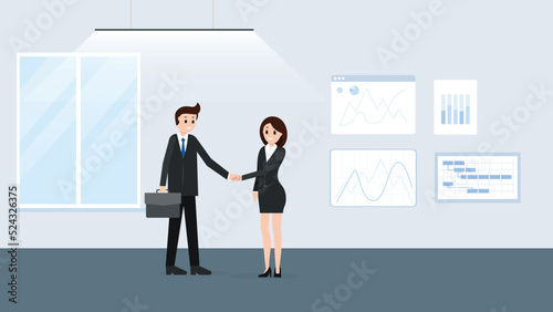 © vinayak, Fototapeta premium Man and women in office meet each other