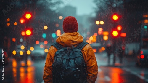 Fototapeta premium Man arriving at road junction is faced with the decision of taking the right...