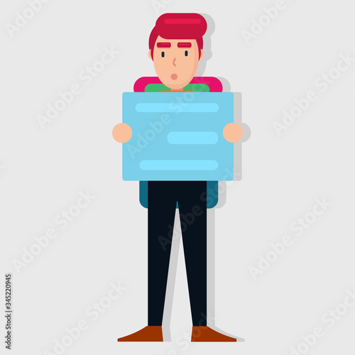 Obraz premium man backpacker looking at map vector illustration