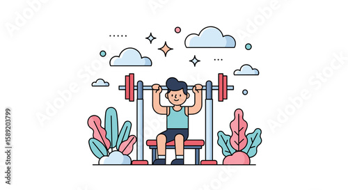 Obraz premium Man Bench Press Exercise Illustration Workout Gym Fitness