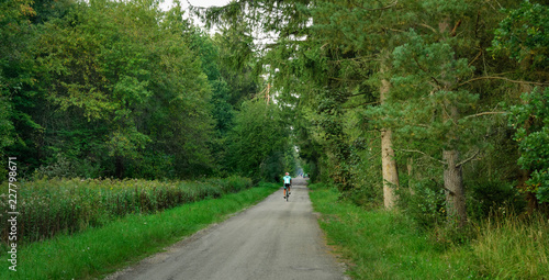 © ar77, Fototapeta premium Man biking in the Perlacher Forst, panoramic view