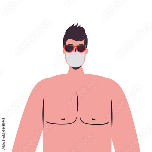 Fototapeta premium Man cartoon with medical mask and glasses design, Summer vacation tropical and covid 19 virus theme Vector illustration