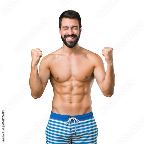 © Mishkat Uddin Rahat, Fototapeta premium Man celebrating fitness achievement isolated on transparent background