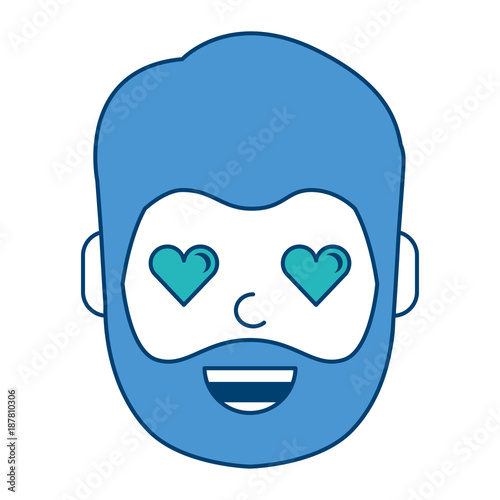 Naklejka premium man character in love emotion with hearts as eyes vector illustration blue...