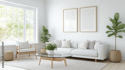© Elena, Fototapeta premium Man cleaning a glass coffee table in a bright living room with modern decor