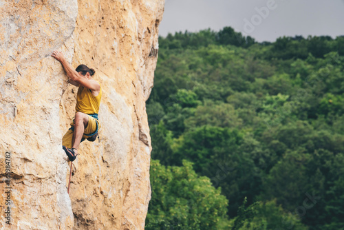 Obraz premium Man climbs a rock.