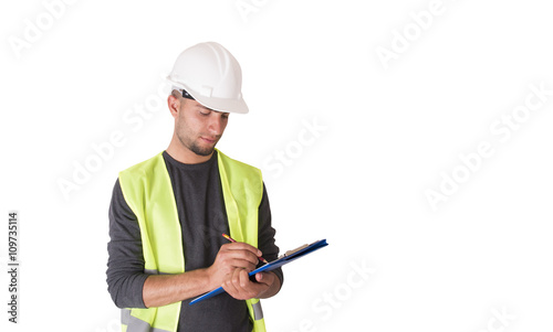 © Memed ÖZASLAN, Fototapeta premium man construction engineer control list