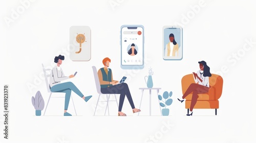 © chutikan, Obraz premium Man consults doctor online via internet on tablet. Vector illustration