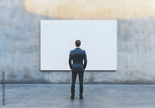 Obraz premium Man Contemplating a Blank Canvas: Business, Opportunity, and the Future