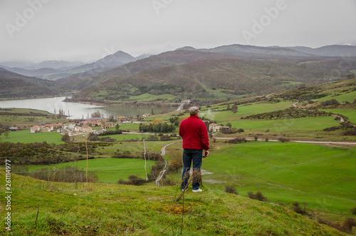 Naklejka premium Man contemplating views of Vañes. Palencia