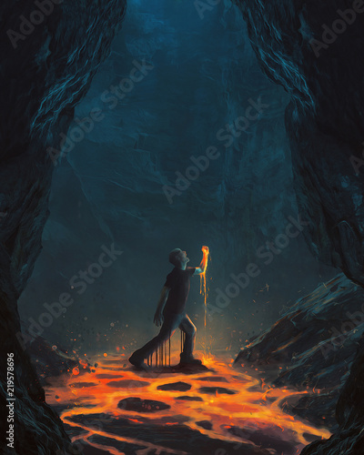 © Kevin Carden, Obraz premium Man covered in lava