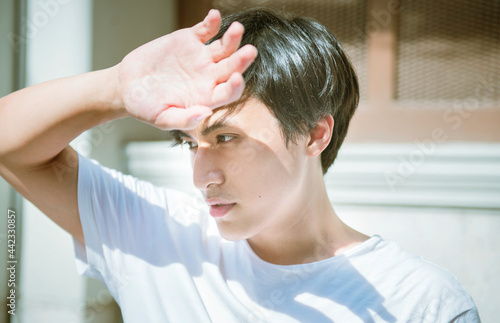 © Rawpixel.com, Fototapeta premium Man covering his face from the sun