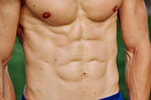 © VICHIZH, Fototapeta premium man doing sports in the park outdoors cardio CrossFit