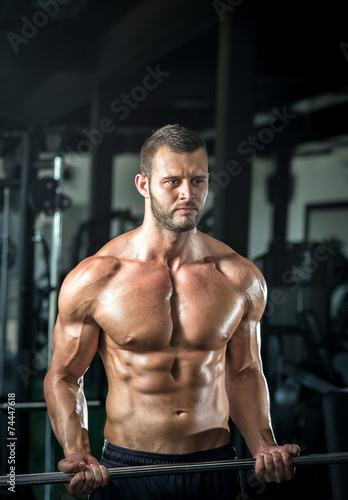 Fototapeta premium Man doing weight lifting in gym