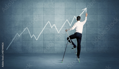 Obraz premium Man drawing line from ladder