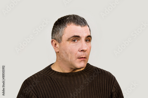 © NataliAlba, Fototapeta premium man emotions white black different sadness surprise joy adult isolated hands