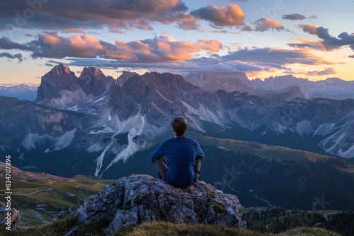 Fototapeta premium Man Enjoying Sunset View in Majestic Mountains