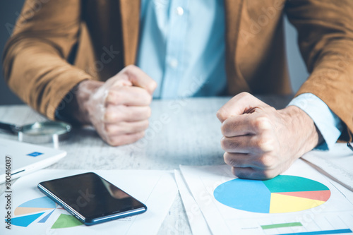 Obraz premium man fists on document on desk