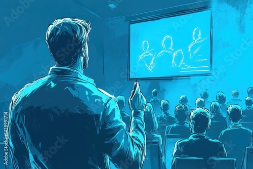 © jiwa, Obraz premium Man giving presentation in lecture hall