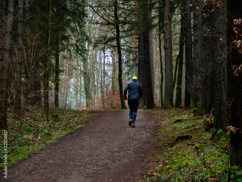 © Ivan, Obraz premium Man goes in for sports in the forest.