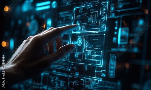 © Valentyna, Fototapeta premium Man hand using cybersecurity interface