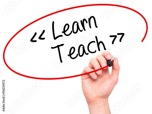 Fototapeta premium Man Hand writing Learn - Teach with black marker on visual screen.
