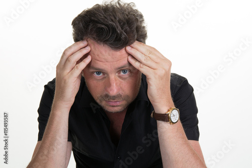 © OceanProd, Naklejka premium Man having a headache isolated on white