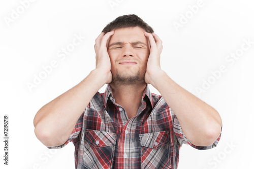 © BlueSkyImages, Naklejka premium man having headache on white background.