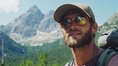 © artbot, Naklejka premium Man hiking in mountains portrait