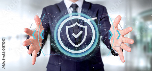 Fototapeta premium Man holding a Shield web security concept 3d rendering