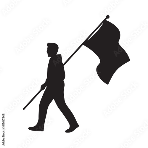 Fototapeta premium Man Holding Flag Silhouette