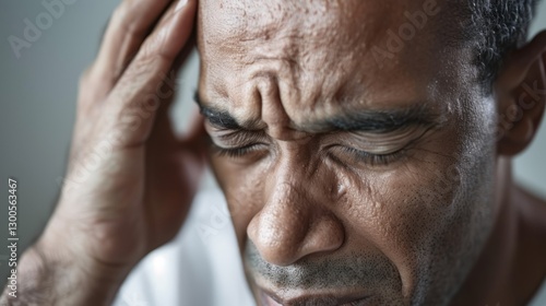 © iuricazac, Obraz premium "Man holding his head with a concerned expression."