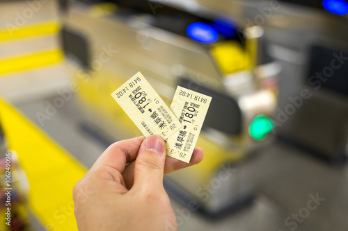 © exzozis, Obraz premium man holding japan train ticket in TOKYO station
