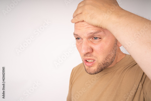 Obraz premium Man holds hand on his head because he did something wrong and has now problems