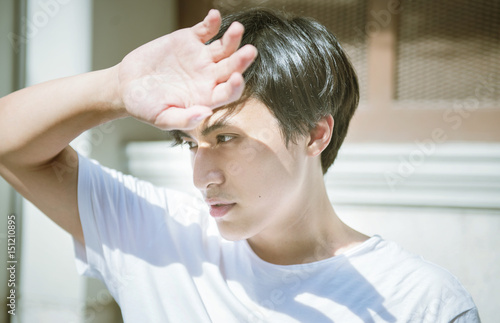 © Rawpixel.com, Fototapeta premium Man hot sweat summer season