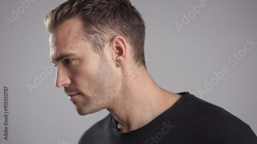© Alexander, Fototapeta premium Man in Black Shirt Looking Down