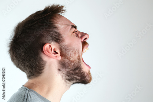 Obraz premium Man in despair screaming , emotional distress and mental health concept